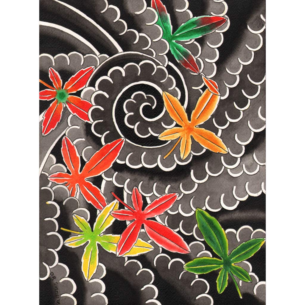 Amazon Com Maple Leaves X David Simmes Autumn Traditional Japanese Tattoo Canvas Art Print Posters Prints